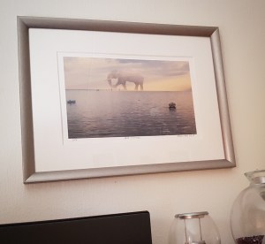 Hösten 2015 ser jag en tavla av konstnären Monica Lindhé som verkligen fångar mig, för den visualiserade och symboliserade så bra hur jag känner mig. Jag köpte den som ett vykort. Bilden föreställer den stabila Öresundsbron i ett lugnt fint vatten. På bron går en gigantisk elefant. Så oproportionerligt stor, felplacerad och alldeles tung. Helt plötsligt känns inte Öresundsbron lika stabil. Man undrar om den kommer hålla, spricka eller rasa.