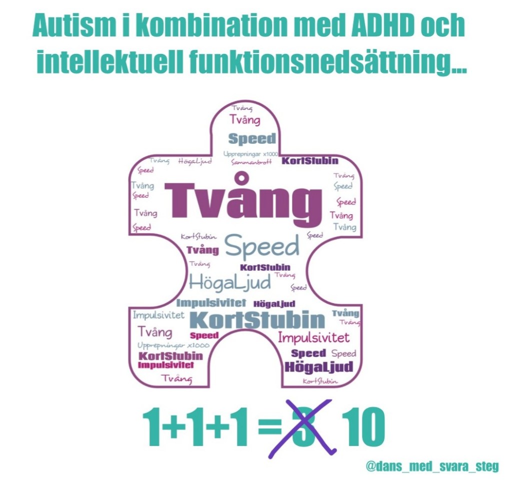 Ibland vill människor i all välmening berätta om personer med autism som det gått bra för, om vilka möjligheter det finns när styrkorna hamnar i rätt sammanhang. Så är det ju och det är verkligen häftigt att se! Men jag kan inte alls relatera och det ger mer en sorgsen känsla. Att ”bara” ha autism är något helt annat än kombinerade diagnoser. Jag menar inte alls att förminska de utmaningarna som de familjerna ställs inför. Många gånger kanske det är just de här barnen som har det svårast eftersom de tillhör vanliga skolan med ett system, miljö och arbetssätt som inte alls är anpassade efter hur de fungerar. För föräldrarna innebär detta ofta en mångårig kamp och strid för rätt stöd och anpassningar för en fungerande skolgång så att deras barn kan må bra.