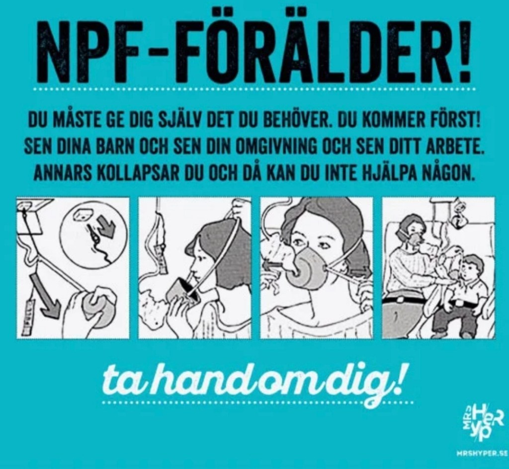 Vilket gigantiskt stort steg för Linus! Och ett viktigt steg för vår familj. Det är klart att ingen förälder vill lämna sitt barn på ett korttidsboende, men när man känner att man måste – då ska man. Som jag skrivit tidigare, säkerhetsföreskrifterna på flyget kan praktiseras även för npf-föräldrar: Först ska man sätta på syrgasen på sig själv. Sen kan man hjälpa andra mycket bättre. Det är inte fel att ge sig själv en paus ibland – det vinner alla på!