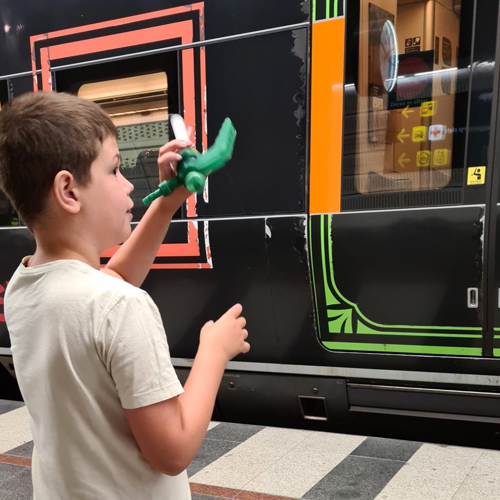 När vi går mot hissen ser jag plötsligt den här pojken komma springande från rulltrappan och kasta sig på ett tåg som kör innan jag hinner agera. Inser direkt vad som precis hänt, han har rymt! Jag säger till Linus att vi måste stanna på perrongen. En minut senare kommer mycket riktigt mannen springande i panik.