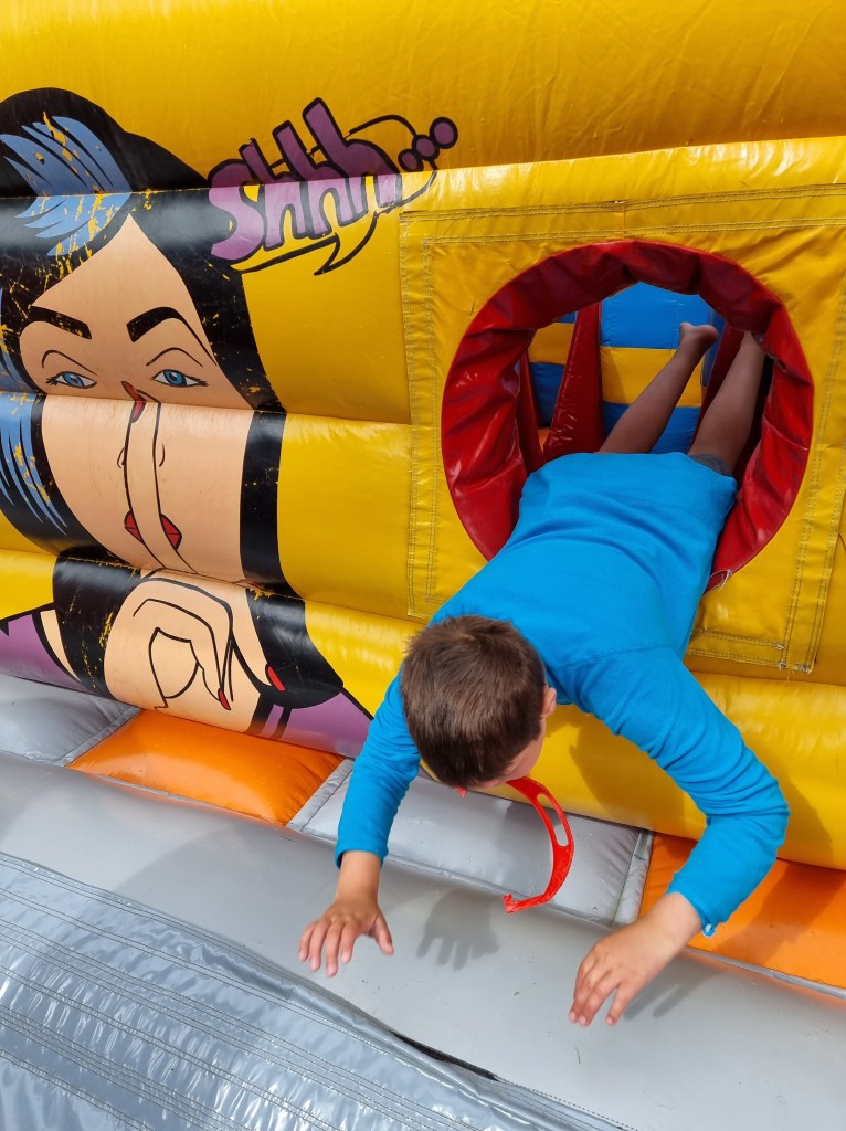 Alla Malmös funkisbarn bjöds in till Big five festival 1,5h innan övriga släpptes in. Där fanns tröjmålning, bygga egen drake, cykling, dans, bollsport och så klart den gigantiska uppblåsta hinderbanan. Barnen fick möjlighet att leka och uppleva alla dessa saker i lugn och ro – utan köer och för mycket folk omkring sig. Det var sååå skönt. Många av dessa barn hade aldrig kunnat komma utan denna anpassning.
