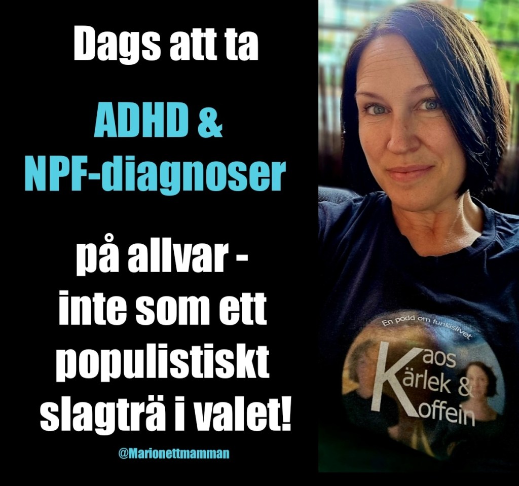 Det finns SÅ mycket att säga om detta. Jag saknar verkligen debatten om hur barn med olika funktionsnedsättningar kan få det bättre i Sverige. Och när en npf-diagnos väl nämns är det förslag om ADHD-screening av små 5-åringar i utsatta områden som en del i att stoppa gängen… Det lyser okunskap och populism.