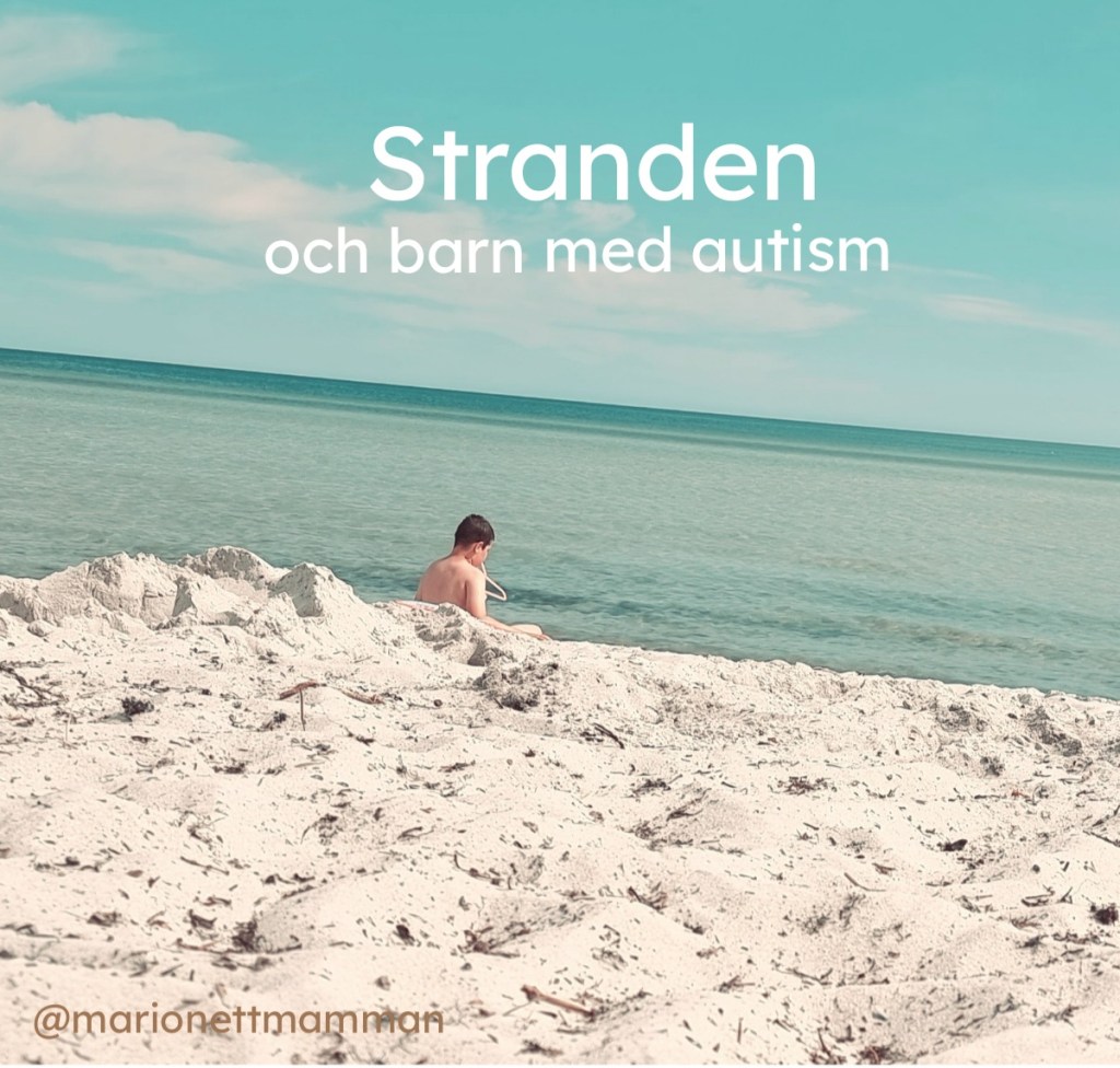 Stranden är i sig en väldigt utmanande plats. Det är varmt, väldigt ljust, mycket folk, sand som fastnar på kroppen, mycket olika ljud, dofter, blåst osv. Sinnesintrycken fullständigt sköljer över barnet med autism som kanske är överkänslig för flera av dem.